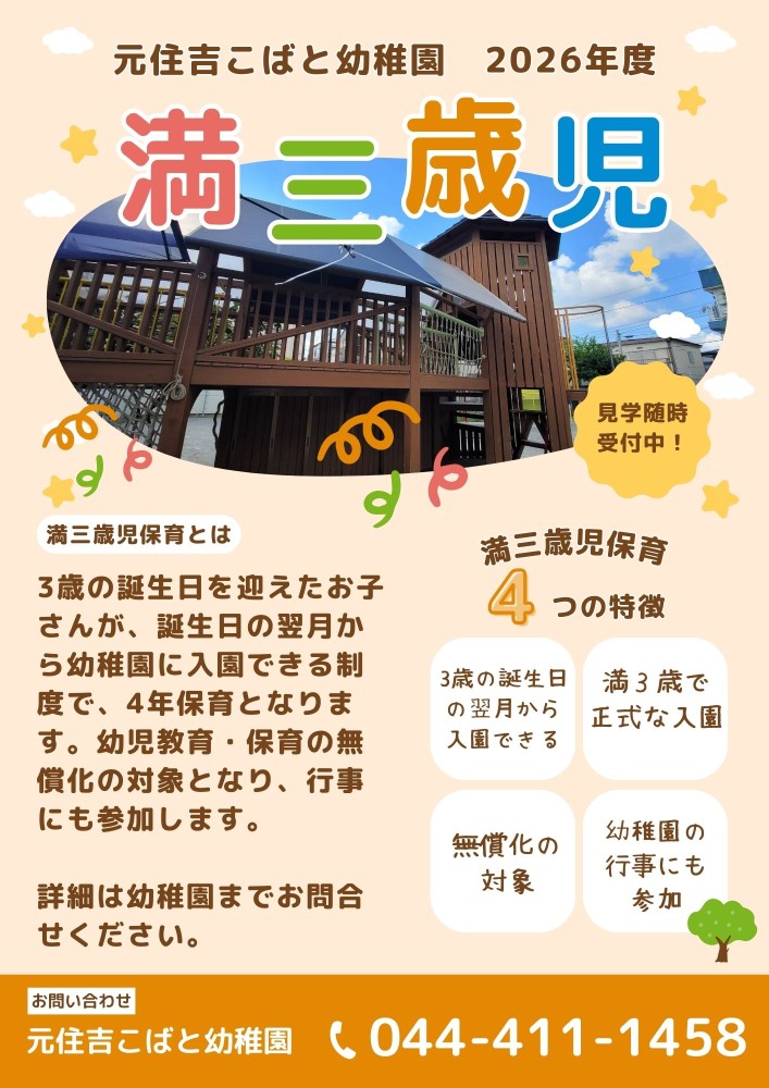 ※2026年度より満3歳児クラスも始まります。